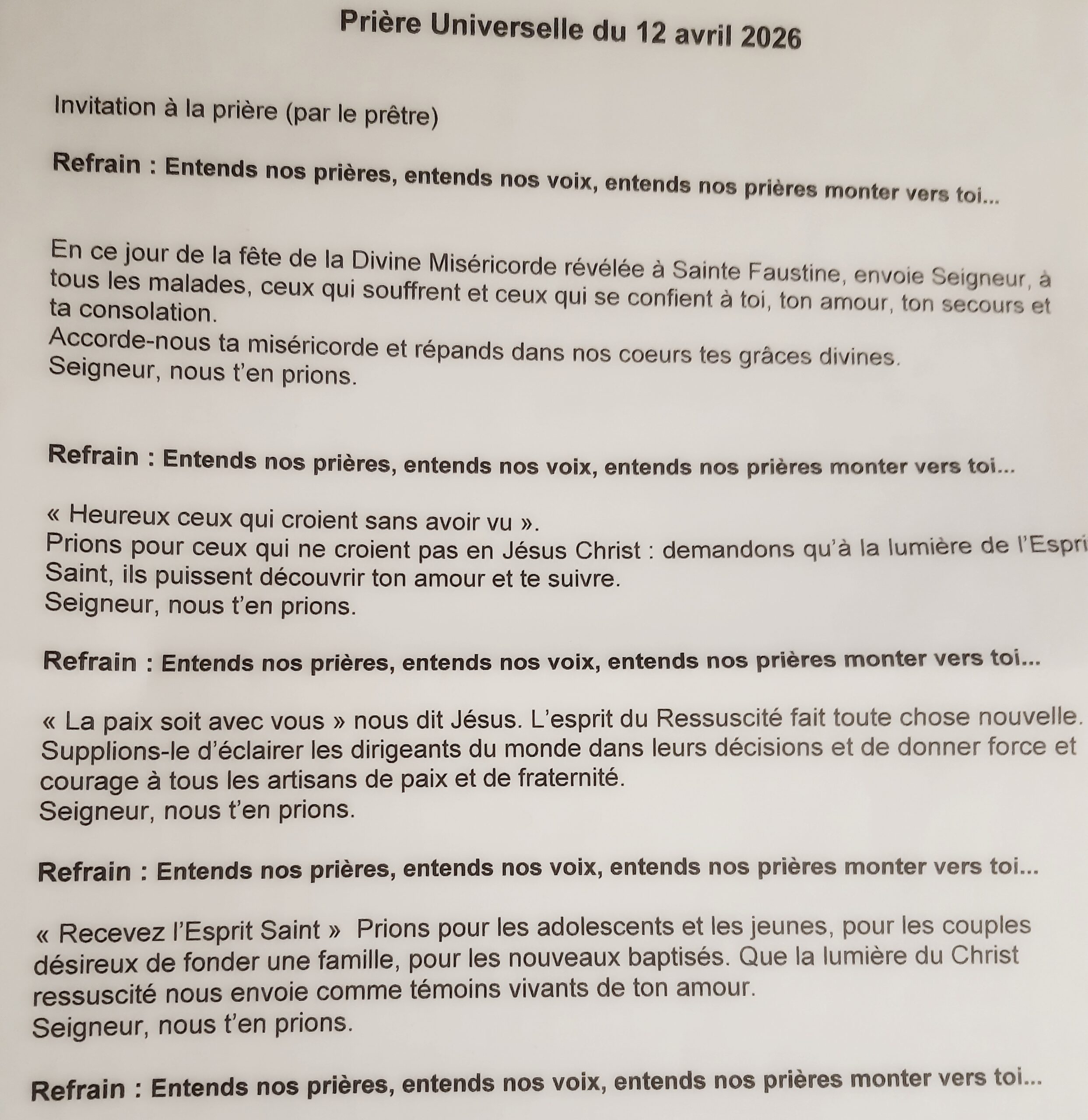 frères et sœurs de tous les rivages, frères et sœurs de tous les temps, Peuple de croyants aux milles visages, Saints de chez nous, priez pour nous …