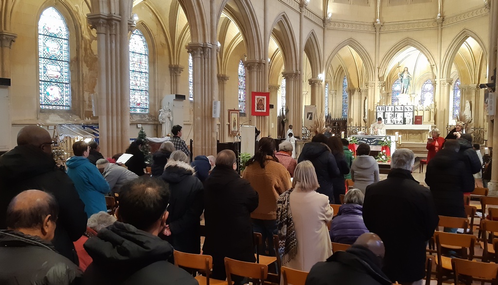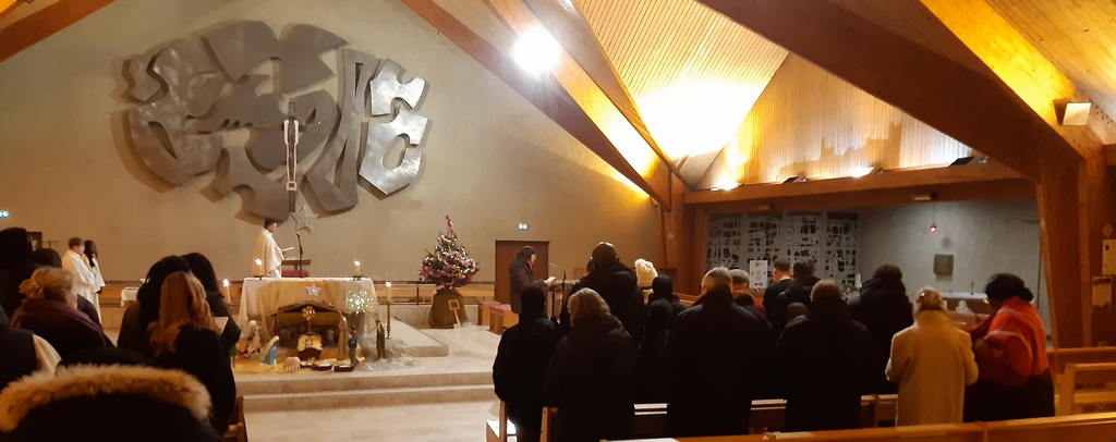 à la fin de la messe ce midi, bénédiction des animateurs et départ des jeunes pour la retraite de Noël à Saint Wandrille !
