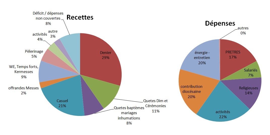 Répartition des recettes et dépenses paroissiales en 2024